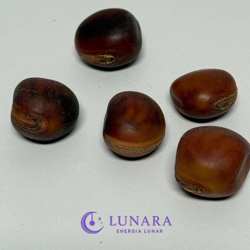 Para uso pessoal, pode ser carregada como pingente, pulseira ou chaveiro, mantendo a semente próxima do corpo para proteção constante.